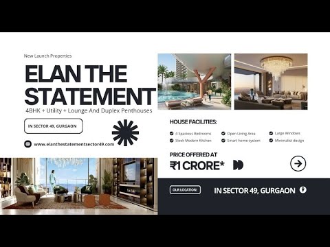 Elan The Statement brings a new benchmark of luxury living to Sector 49, Gurgaon. This high-end residential project features beautifully planned 4 BHK apartments with utility spaces and lounge areas, catering to modern family needs. The duplex penthouses add an extra layer of exclusivity for those who desire premium living. Developed by the trusted Elan Group, the project ensures quality construction, smart layouts, and a peaceful environment while keeping residents close to major business hubs and daily conveniences.